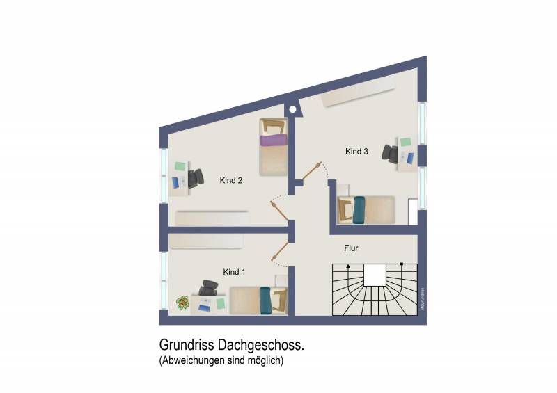 Dachgeschoss: Flur, 3 Zimmer